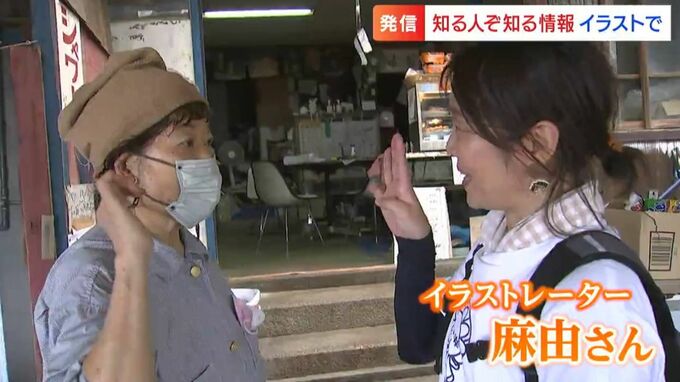 体当たりで取材をするのは、笠岡市各地を巡るイラストレーターの麻由(まゆ)さん。