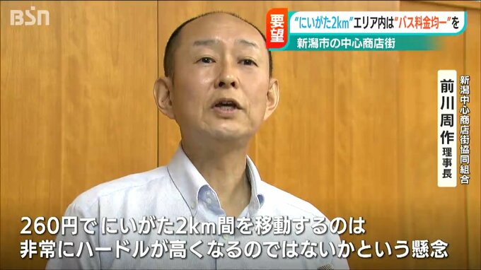 【新潟中心商店街協同組合 前川周作 理事長】「260円で『にいがた2km』間を移動するのは非常にハードルが高くなるのではないかなという懸念。特別な料金設定を考えていただけないかなと」