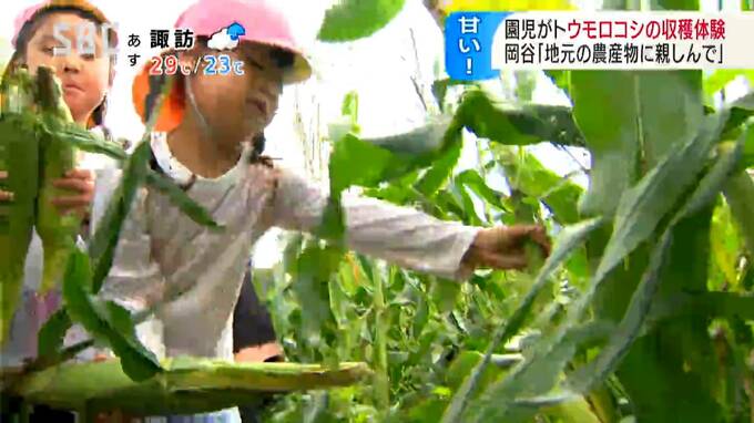 地元の農産物に親しんでほしいと、岡谷市で園児がトウモロコシの収穫を体験しました。