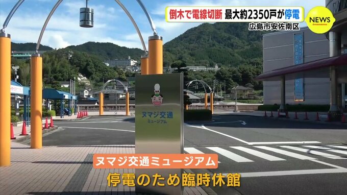 中国電力ネットワークによりますと、22日午後1時すぎ以降、最大でおよそ2350戸が停電しました。この影響で現場付近にある「ヌマジ交通ミュージアム」が臨時休館しました。