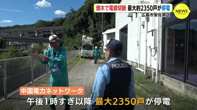 22日午後、広島市安佐南区で倒木により電線が切れ、停電が発生しました。