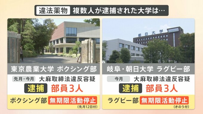 大麻取締法違反容疑で“2大学で6人逮捕”も 部は無期限活動停止