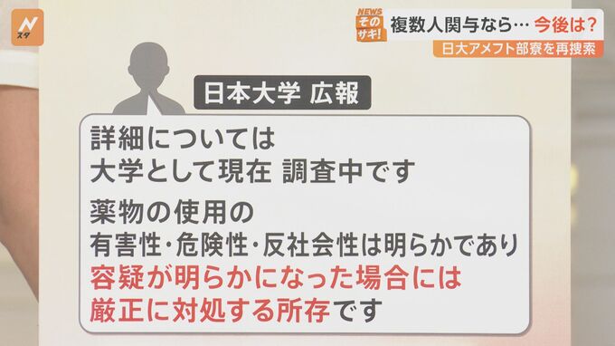 「詳細については、大学として現在調査中です。薬物の使用の有害性・危険性・反社会性は明らかであり、容疑が明らかになった場合には、厳正に対処する所存です」