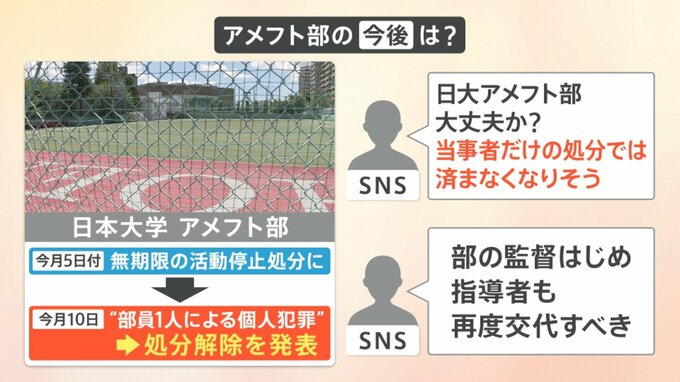 その5日後の8月10日には、大学側は“部員1人による個人犯罪”として、部全体の処分解除を発表したわけです。
