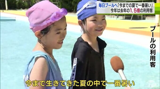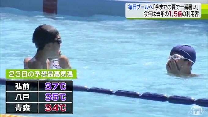 きょうの最高気温は31.9℃。真夏日となった青森市の屋外プールでは、子どもたちが気持ちよさそうに泳いでいます。こちらでは、2022年の夏の利用客が約2000人だったのに対し、今年はすでに3000人以上と1.5倍に増えています。