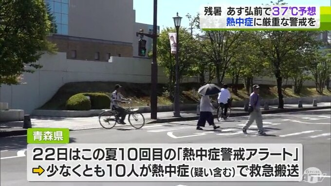 22日は青森県にこの夏10回目の「熱中症警戒アラート」が発表され、少なくとも10人が熱中症やその疑いで救急搬送されました。