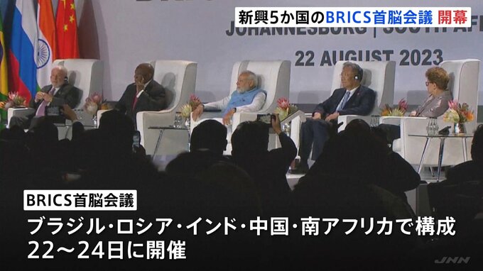 中国、ロシア、インドなど新興5か国でつくるBRICSの首脳会議が22日、南アフリカで開幕しました。ブラジル、ロシア、インド、中国、南アフリカの新興5か国でつくるBRICSの首脳会議は、24日まで3日間の日程で行われ…