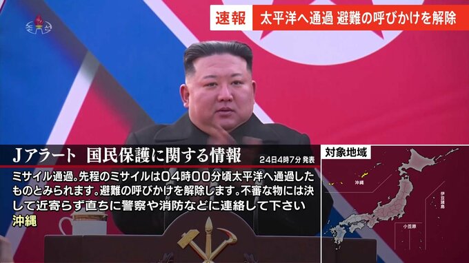 防衛省によりますと、北朝鮮が弾道ミサイルの可能性があるものを発射しました。政府は午前3時54分に沖縄県を対象にJアラート=全国瞬時警報システムで、建物の中、または地下に避難するよう呼びかけましたが、その…