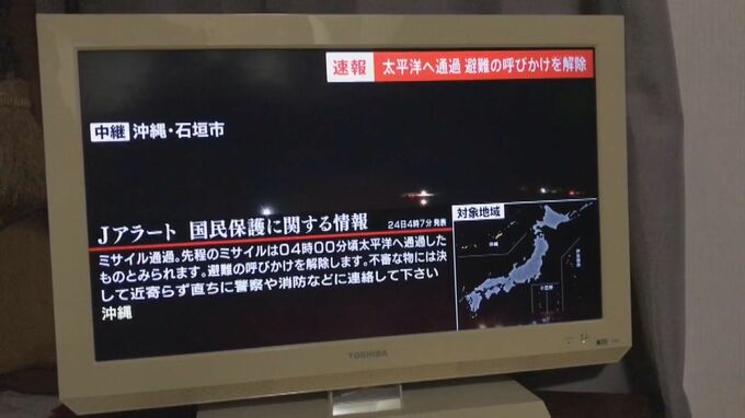 政府は8月24日午前3時54分、沖縄県を対象にJアラート=全国瞬時警報システムで避難を呼びかけましたが、ミサイルは午前4時ごろ沖縄県付近の上空を通過し、避難の呼びかけは解除されました。