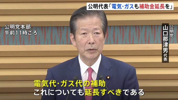 公明党の山口代表は物価高対策として、来月から順次終了することになっている電気やガスに対する政府の補助金について、「延長するべきだ」と訴えました。公明党 山口那津男代表「物価高に負けない賃上げに向けた…