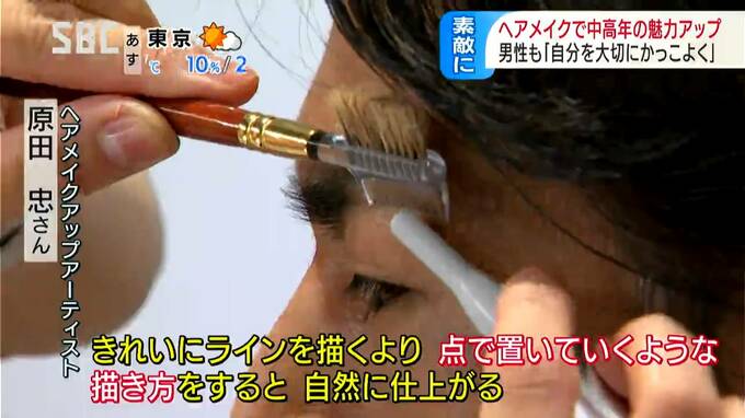 「男性ってすごく濃い人もいれば薄い人もいる。(まゆ毛の)足りないところは埋めていく。綺麗にライン書くというよりは、足りないなと思う所に点で置いてくような描き方をしていくと自然に仕上がりますよね」