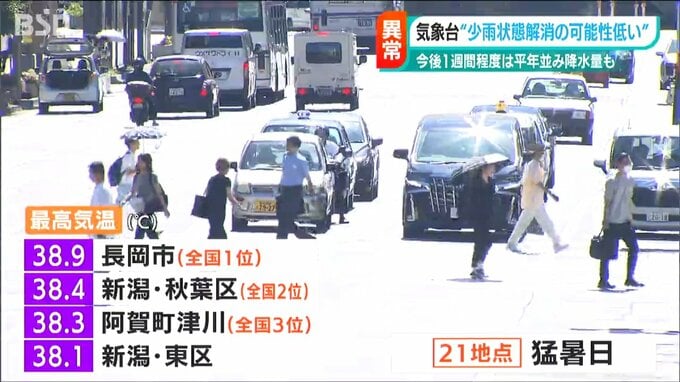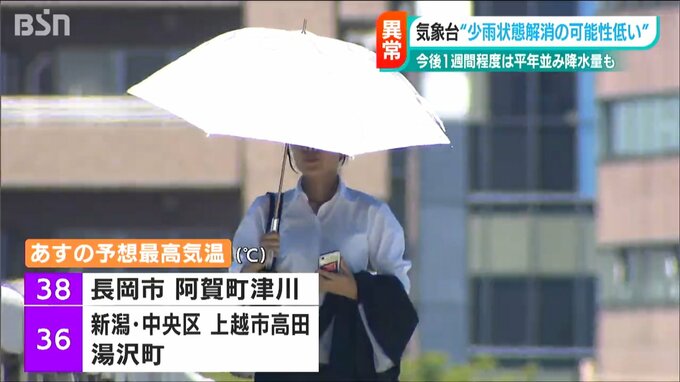 新潟県内は24日も猛暑が続き、雨はほとんど降りませんでした。新潟地方気象台は、5年ぶりに「少雨に関する気象情報」を発表し、農作物や水の管理への注意を呼びかけました。