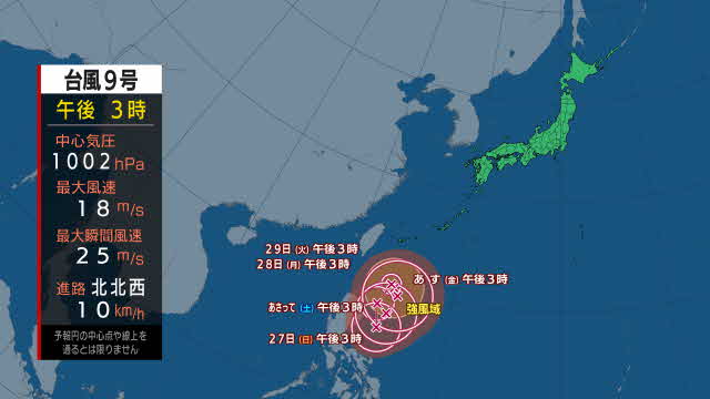 沖縄の南の海上で24日午後、台風9号が発生しました。