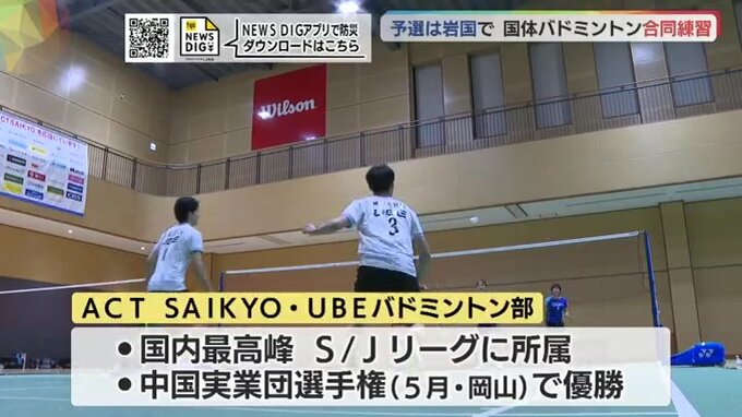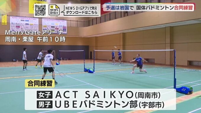 今週末、岩国市で開かれるバドミントンの国体・中国地区予選を前に、県内の実業団2チームが周南市で合同練習をしました。