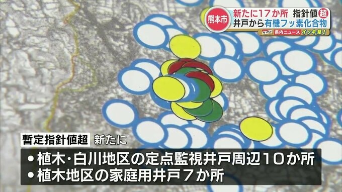 新たに17か所で指針値を超える値が検出されました。問題となっているのは人体への影響が指摘されている有機フッ素化合物のPFOS(ピーフォス)とPFOA(ピーフォア)で、これまでに熊本市の植木地区と白川地区の定点…