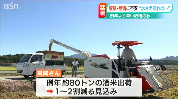 例年高岡さんは80tほどの酒米を出荷していますが、今年は1~2割ほど減る見込みです。