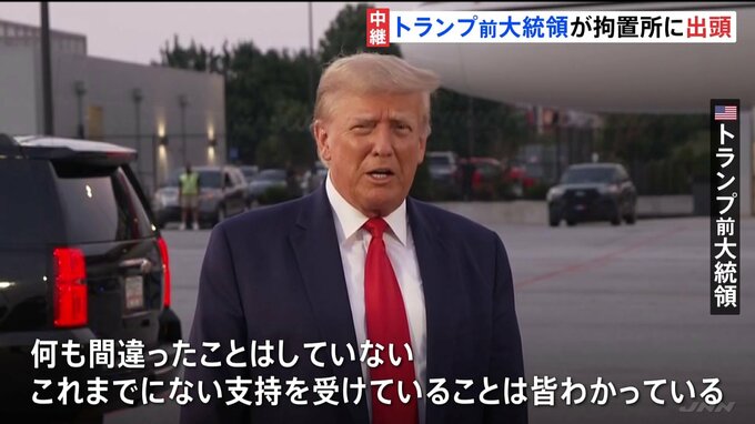 2020年の大統領選挙の結果を覆そうとしたとして19人が起訴された事件で、アメリカのトランプ前大統領が先ほど、ジョージア州の拘置所に出頭しました。敗北した選挙戦の結果を覆そうとした犯罪集団の一員として起訴…