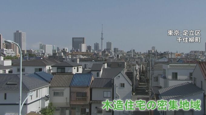 都内でよく見られる木造住宅が密集した“木密地域”です。耐震化や不燃化といった対策が進み、建物被害と死者の想定は10年前より3割減少しましたが、いまだに、甚大な被害が想定されています。