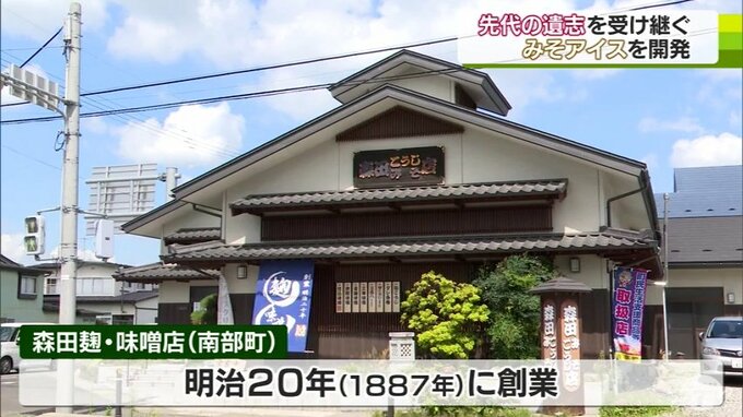 こちらは今年7月に販売が始まったカップアイスです。開発したのは明治時代に創業した南部町の「麹・味噌店」です。自慢の味噌をふんだん使ったこのアイスを構想したのは5年前に亡くなった先代で、遺志を継いだ息子が完成させました。