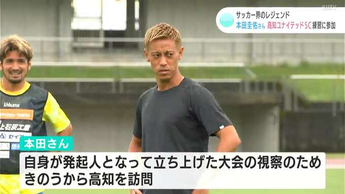 サッカー界のレジェンド本田圭佑さんが25日朝、高知ユナイテッドSCの練習に参加しました。本田さんを一目見ようと多くのファンが競技場に駆け付け選手たちの士気も高まったようです。小雨が降る中朝から春野陸上競…