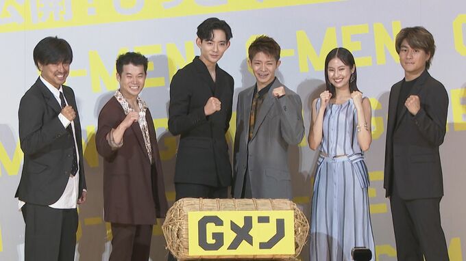 元King & Prince岸優太さんの初主演映画「Gメン」の公開記念舞台挨拶が行われ、共演の竜星涼さん、恒松祐里さん、矢本悠馬さん、SixTONESの森本慎太郎さん、瑠東東一郎監督と共に登壇しました。
