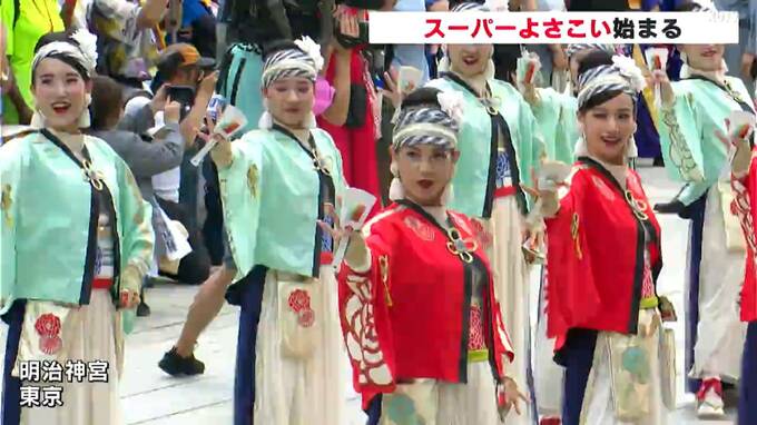 「よさこいで世界に元気を届けよう」と開催されるスーパーよさこい。2001年から毎年開催されてきましたがコロナ禍で2度の中止をはさみ去年は規模を縮小して開催。今年は祭りの安全を祈願する明治神宮での奉納演舞も4年ぶりに行われました。今年の参加チームは去年に比べ30以上も増え、海外も含め103チームが参加しています。スーパーよさこいは27日までです。