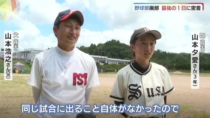 この大会ならではのシーンも。マウンドには、現役の山本夕愛さん。そして受けるのは、父親でOB、山本浩之さんです。