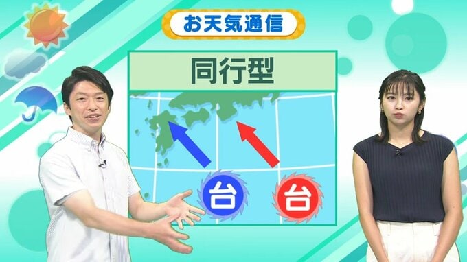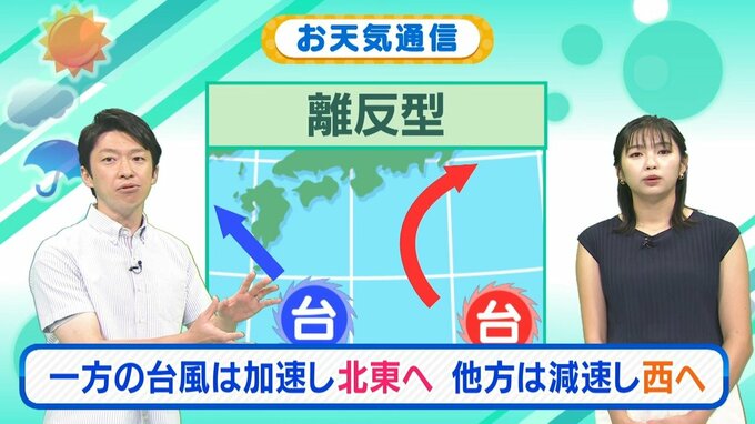 進路を一方に譲ったり、離反したり、台風同士は複雑