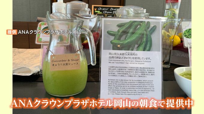 使わているのは曲がったり、傷ついたりした出荷できない規格外のもの。地域の課題解決を学ぶ中国学園大学の学生が規格外のキュウリをおいしく消費したいとANAクラウンプラザホテル岡山にレシピの開発を依頼。先週、試食会が開かれました。
