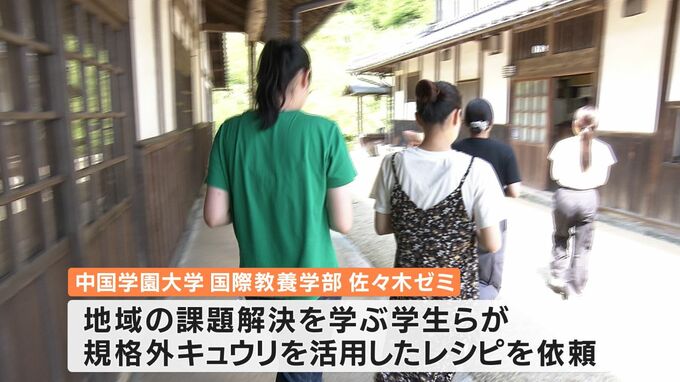 岡山県内最大のキュウリの産地、久米南町で新しいキュウリのレシピが考案されました。学生の発案で始まった今回の企画。曲がったり傷がついたりして出荷できない野菜を減らそうという取り組みです。