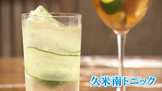 キュウリが入ったカクテル、久米南トニックに、キュウリの冷製スープ、ハチミツやレモンで味を整えたパスタソースなど。すべて久米南町産のキュウリをふんだんに使ったメニューです。