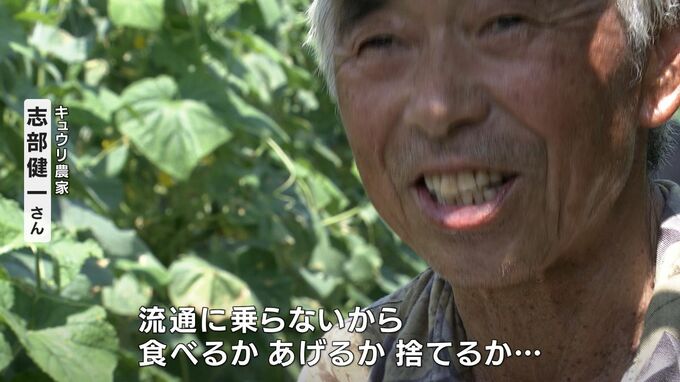 (キュウリ農家 志部健一さん)「流通に乗らないから、食べるか、誰かにあげるか、捨てるか…」