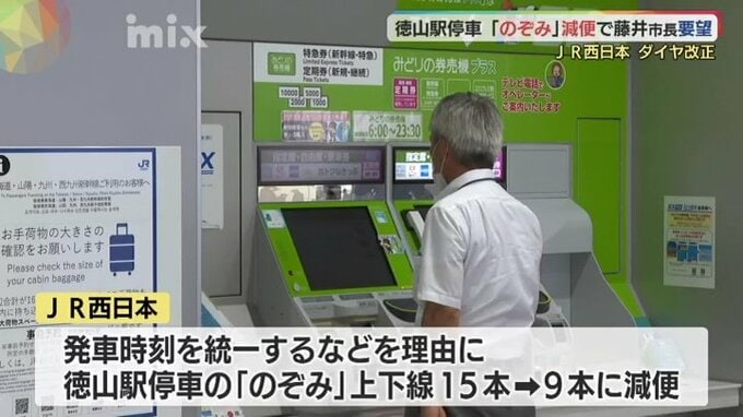 JR西日本が今年春に、徳山駅に停車する「のぞみ」を減便するダイヤ改正を発表したことを受け、周南市長らが要望書を提出しました。