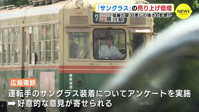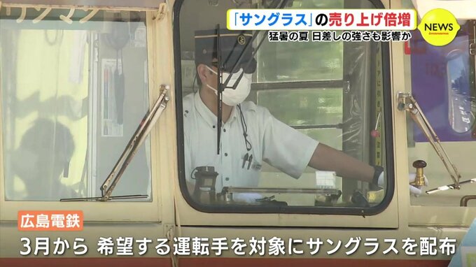 一方、サングラスはこんなところでも活躍しています。広島電鉄では、3月から希望する運転手を対象にサングラスが配布されました。