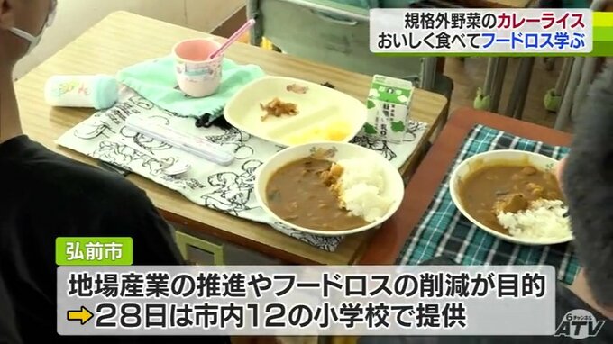 弘前市立松原小学校の児童たちが楽しみにしていた給食の時間。28日の献立は子どもたちが大好きなカレーライスです。夏野菜がたっぷり入ったこちらのカレー、実は形や色が、市場の基準に満たさず、普段は流通されな…