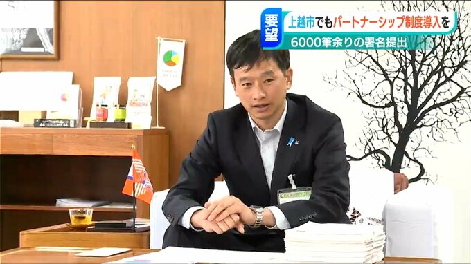 28日午後、市民団体の阿部和子代表ら8人が新潟県上越市の中川幹太市長に、同性カップルらを夫婦と同等と認める『パートナーシップ制度』の導入を求める6000筆あまりの署名と要望書を提出しました。