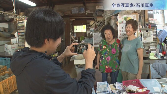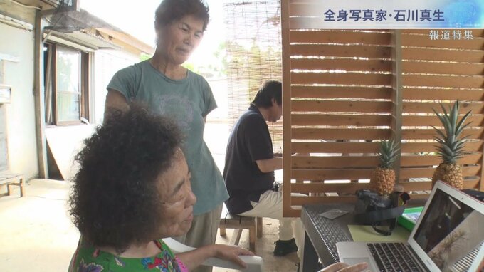 この日、真生さんが訪ねたのは、駐屯地と文字通り目と鼻の先にあるパイナップル農家の当銘さん一家。以前から撮影している当銘みつ子さんに、撮った写真をみてもらうためだ。