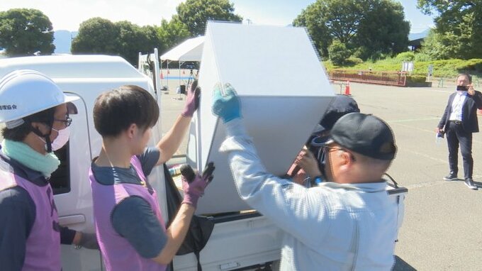 災害時に発生する家具や家電などの廃棄物を1か所に集めて処分する仮置き場の設置訓練が山梨市で行われました。