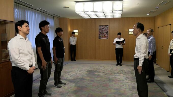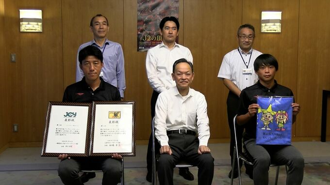 ファジアーノ岡山のUー18チームが、岡山県の横田副知事に第47回日本クラブユースサッカー選手権で3位に入ったことを報告しました。