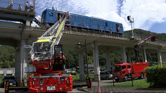 鉄道の高架に取り残された乗客を、はしご車を使って救出です。大規模地震の発生を想定した、列車の乗客を救助する訓練が井原鉄道で行われました。井原鉄道の三谷駅で行われた訓練は、大規模地震が発生して列車が急…