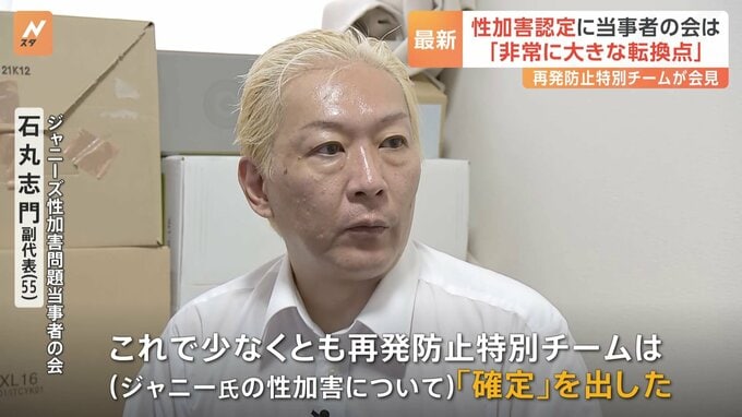 ジャニー喜多川氏による性加害問題で再発防止特別チームが行った記者会見。会見を自宅で見守る、「ジャニーズ性加害問題当事者の会」副代表・石丸さん(55)。ジャニー氏による性加害を認める発言が出ると、何度も…