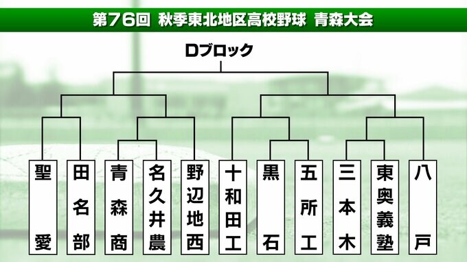 Dブロックはこの夏ベスト4の弘前学院聖愛が田名部と、ベスト8の東奥義塾が三本木との初戦に臨みます。