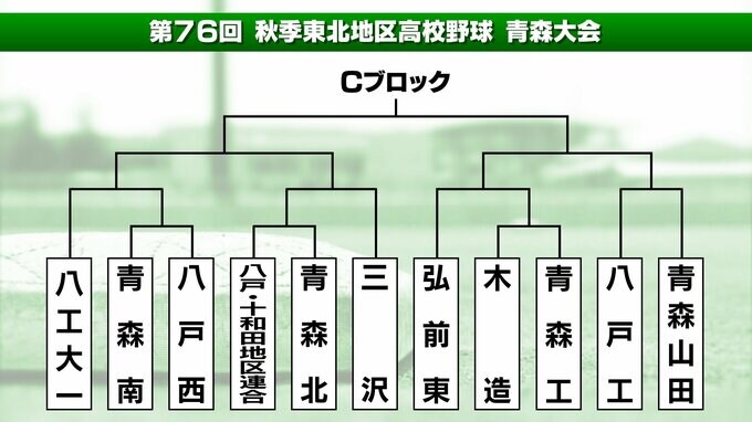Cブロックは夏準優勝の八戸工大一、去年の秋を制した青森山田が2回戦から登場します。