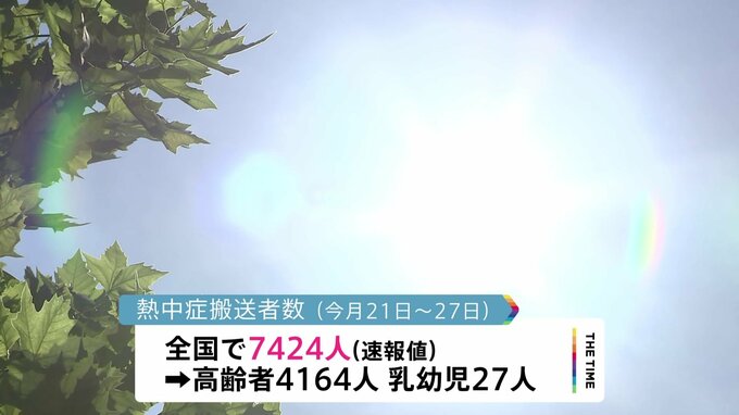 今月21日からの1週間で7424人が、熱中症で救急搬送されたことがわかりました。都道府県別では北海道が最多となっています。総務省消防庁によりますと、今月21日から27日までの1週間に熱中症で救急搬送された人の数…