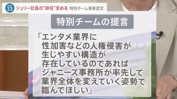 そして調査報告書の終わりには、こんな一文が記載されています。「エンタメ業界に性加害などの人権侵害が生じやすい構造が存在しているのであれば、ジャニーズ事務所が率先して業界全体を変えていく姿勢で臨んでほしい」と。橋田さん、この言葉はどう受け止めますか?