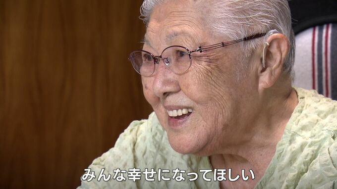 (小笠原トシ子さん(98))「あれを受けた人(戦争を経験した人)にしか、わからない。あの惨めさは。ロシアとウクライナの戦争を聞くと、可愛そうだなと。自分たちの戦争の頃を思い出す。みんな幸せになってほしい。あんな不幸せには誰にもなってほしくない」