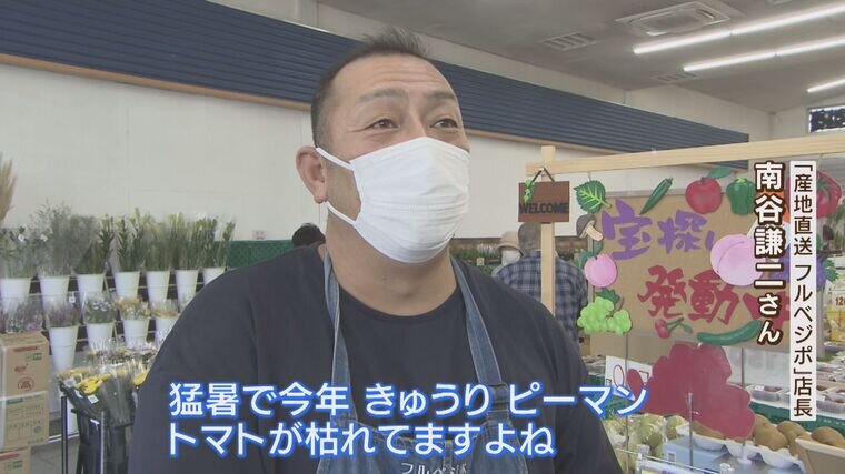 (南谷謙二店長)「猛暑で今年はきゅうり、ピーマン、トマトが枯れていますよね。畑が乾いた状態で急に台風で大雨が降ったので今度はスイカやウリが枯れてしまっている。だいぶダメージはあります。今年は野菜が高騰すると思いますね」