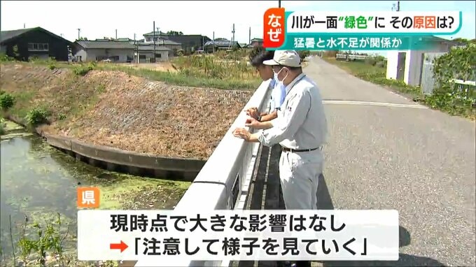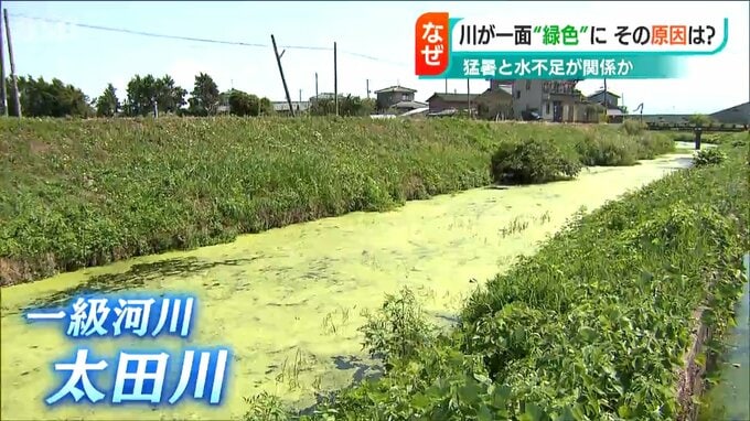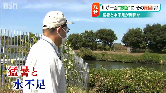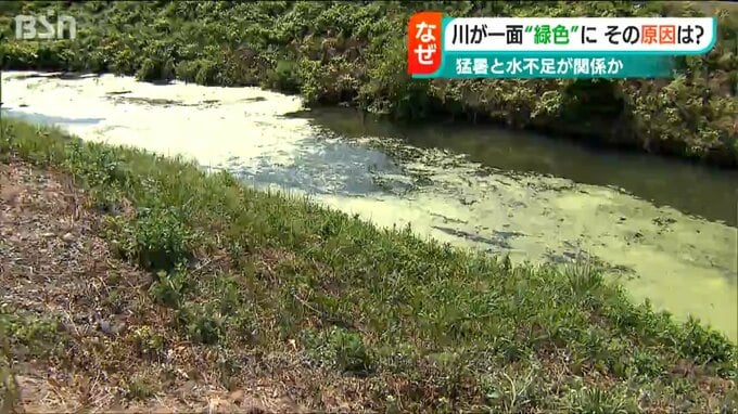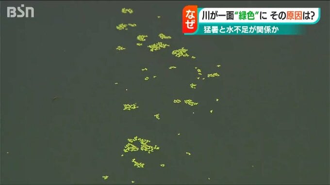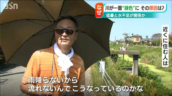 【近くに住む人は】「雨が降らないから水が流れないんでこうなっているのかな。こんな緑色になったのは初めて」