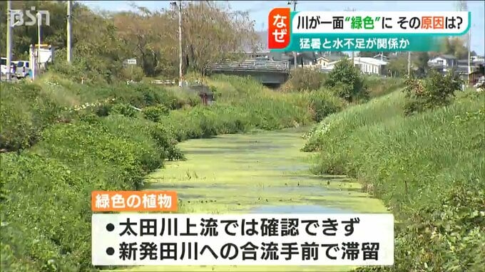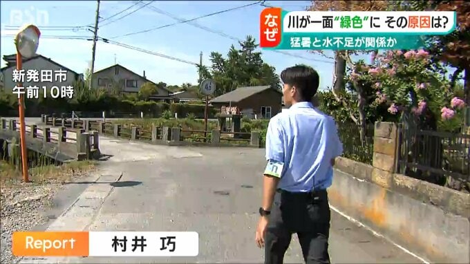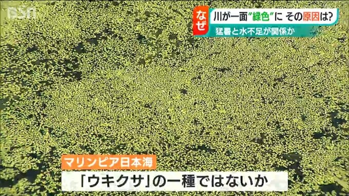 【記者リポート】「この川、流れがほとんどないんです。それでも少しずつ緑色のものが流れていて、よく見ると植物のようなかなり小さな葉っぱのように見えます」