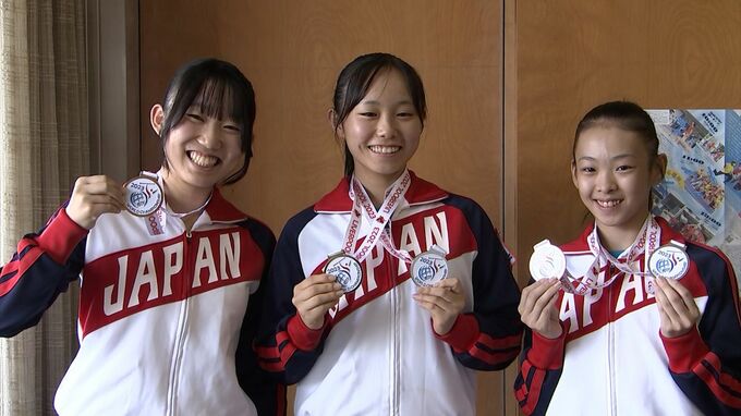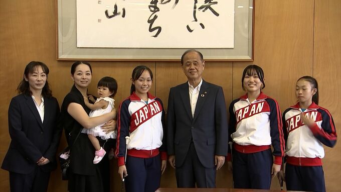 今月(8月)、イギリスで行われたバトントワーリングの大会に日本代表として出場し、世界一位に輝くなどした岡山県のチームに所属する選手3人が、岡山市の大森市長に結果を報告しました。
